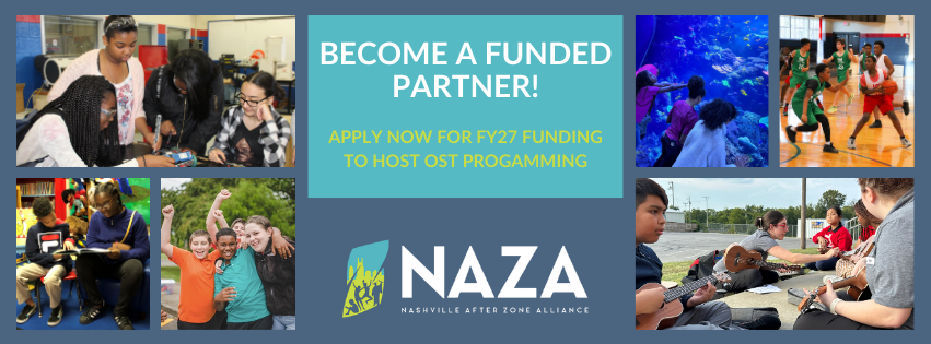 NAZA is now seeking applications from qualified youth development organizations to operate as NAZA-funded partners for FY27 (July 1, 2026 – June 30, 2027) to serve youth in grades 5-8 either in afterschool programming, summer programming, or both. Click here to view details and requirements.